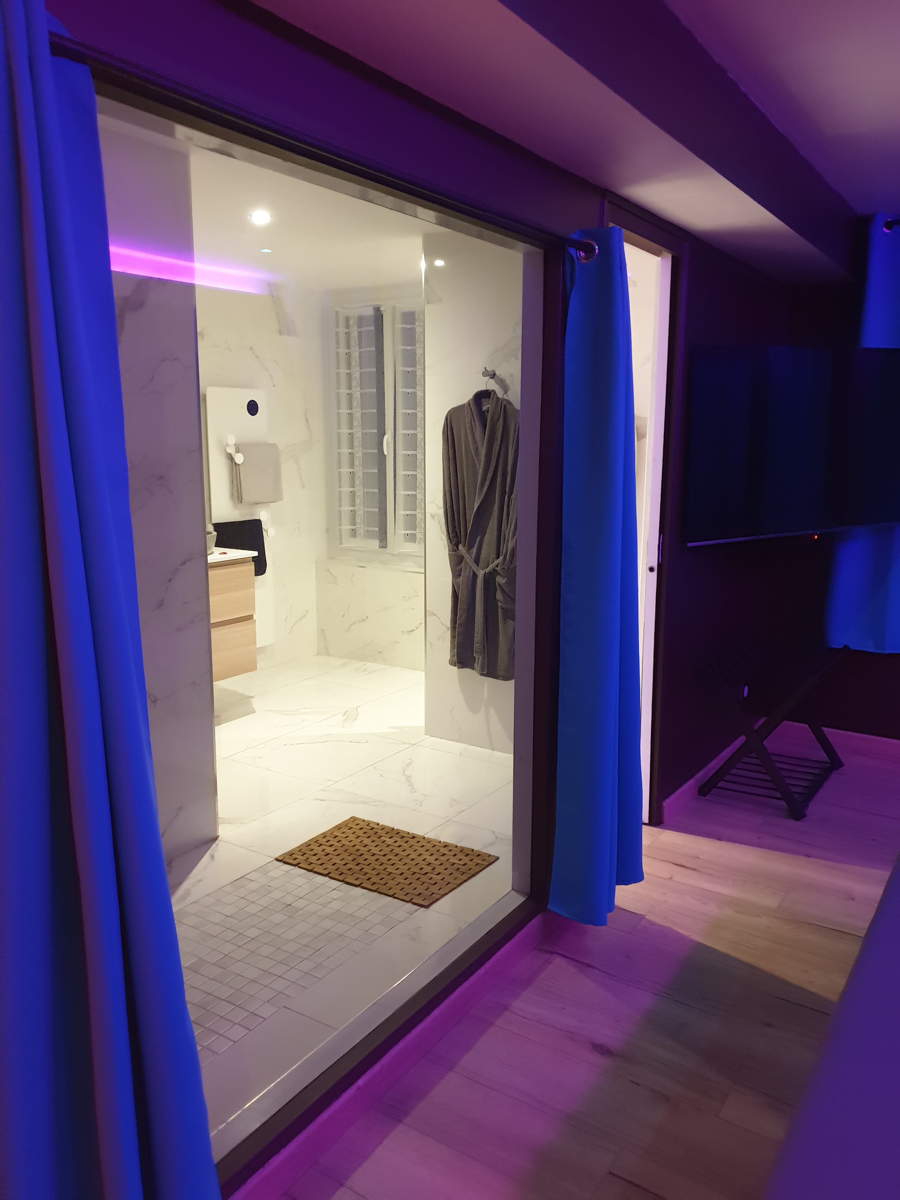 Posté le 11/02/2024 à 10:44"Très bonne expérience. Ayant fait quelques love room. J'affirme que celle là n'est pas extrêmement cher et on en a pour notre argent. Tout est pensée pour passer un agréable moment que ce soit pour la détente dans le jacuzzi, sauna, la télévision, ou encore un moment érotique dans cette petite pièce secrète. Félicitations au propriétaire pour son accueil et son travail"